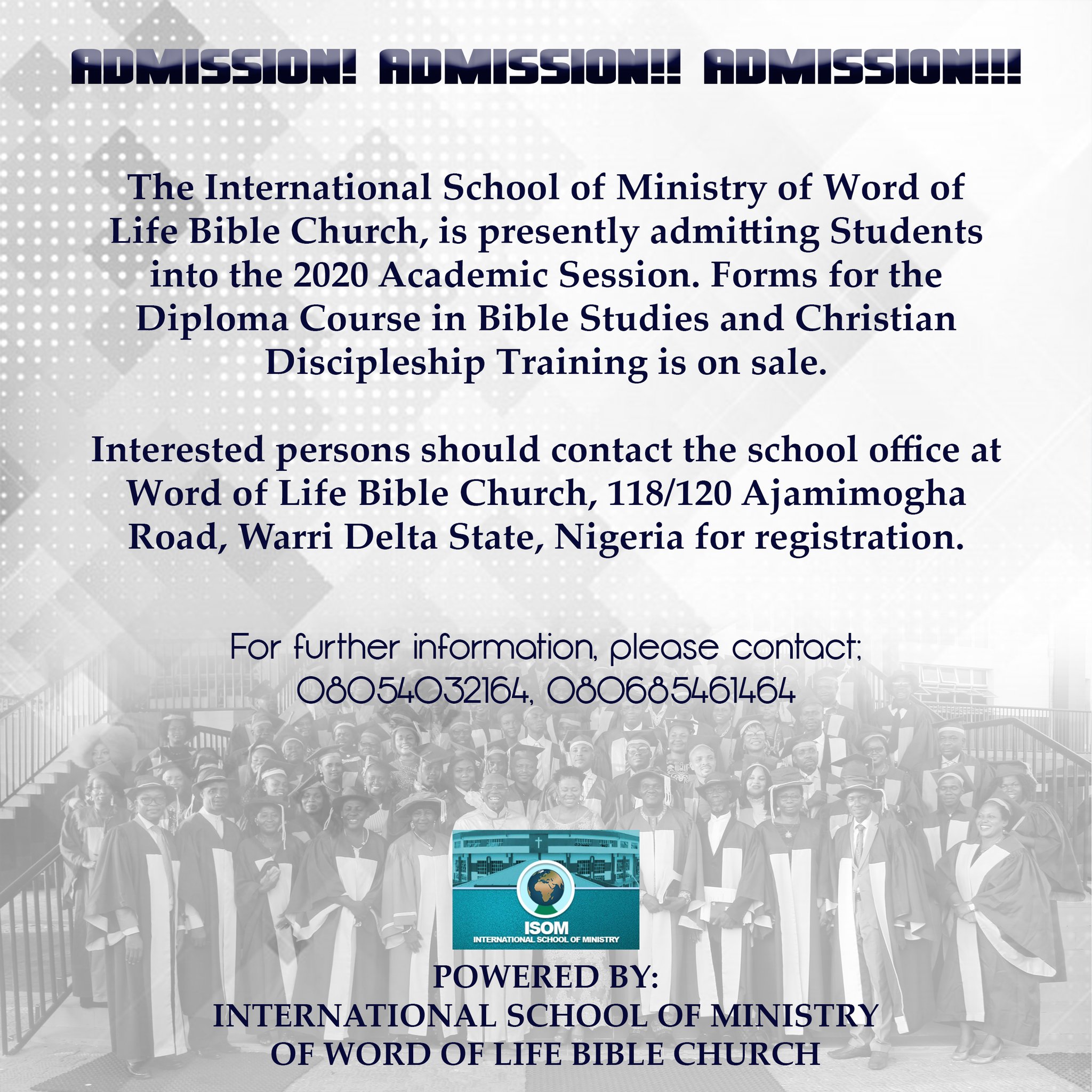 Word Of Life Bible Church V Twitter Admission Into The International School Of Ministry Of Word Of Life Bible Church Is Still In Progress Interested Persons Are Encouraged To Take Advantage Of